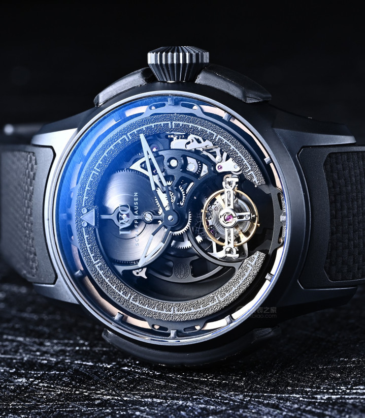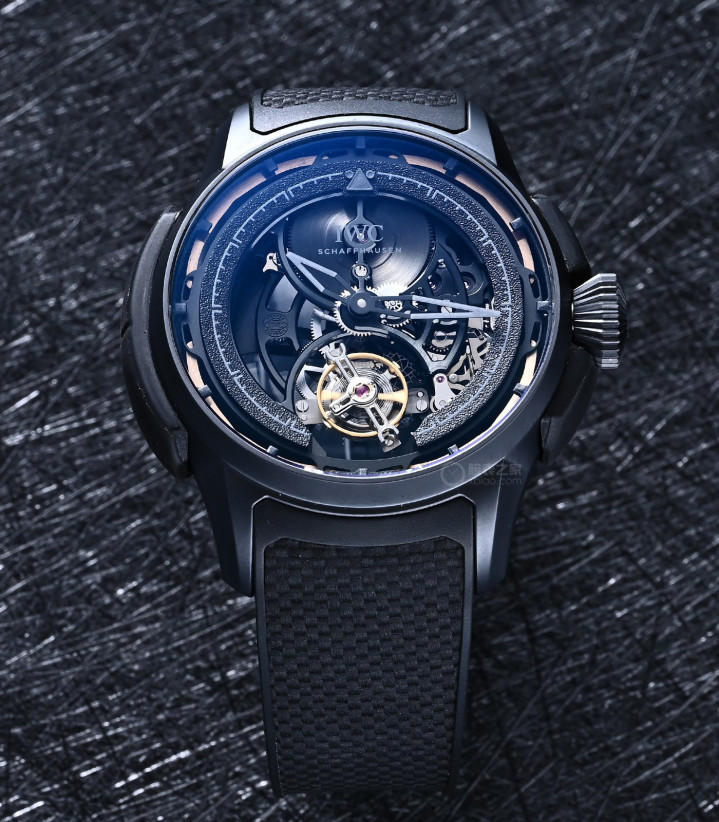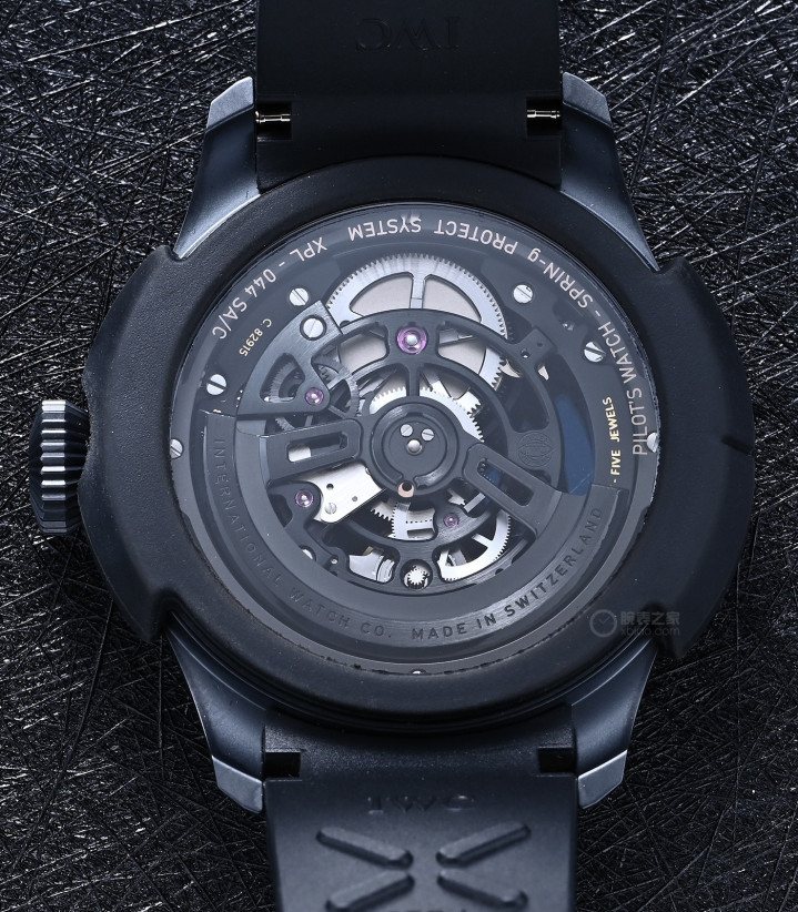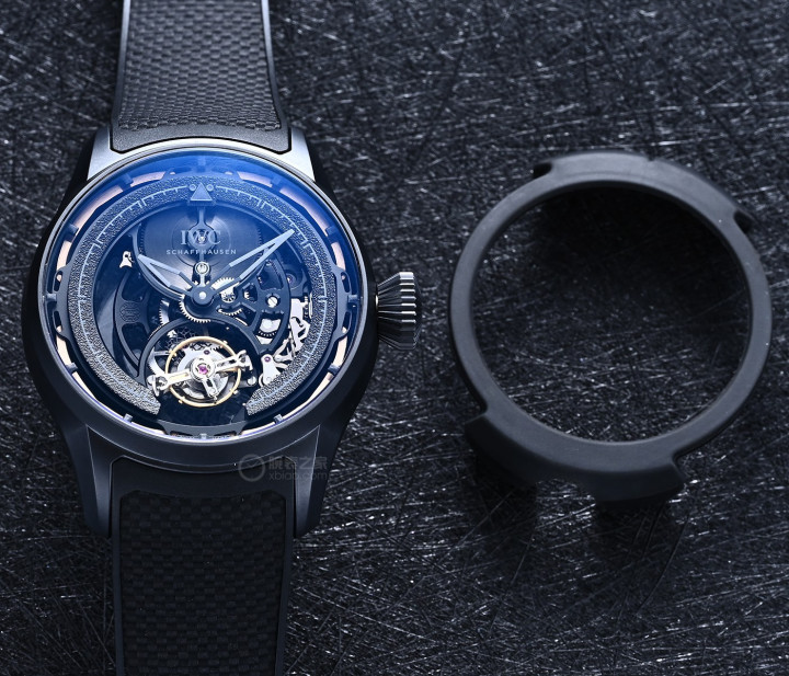 万国大型飞行员减震陀飞轮镂空XPL,有一个可拆卸的“橡胶外壳”。
