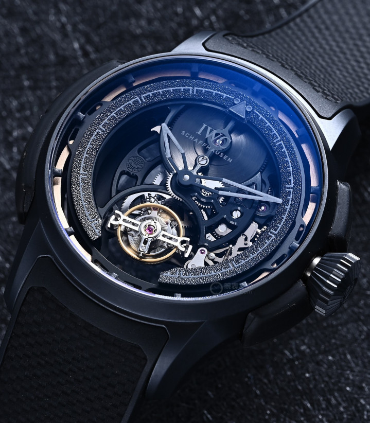 万国大型飞行员减震陀飞轮镂空XPL,是名表世界中,最强大、价值最高的陀飞轮之一。
