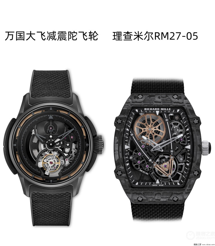 万国的减震陀飞轮(左)和理查米尔的减震陀飞轮(右)