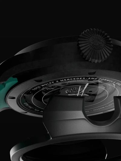 那陀飞轮机芯在表壳中“晃动”会不会折断表冠?不会,因为表冠平时是和陀飞轮机芯分离的,只在调节时间时,才会和机芯啮合。万国大飞减震陀飞轮XPL,使用瓷化钛表壳(钛金属表壳的表面烧制了一个陶瓷层),尺寸44毫米。同时我们可以看到,万国大飞减震陀飞轮XPL,还有一个可以拆卸的“橡胶外壳”,这就又给手表多增加了一层保护。